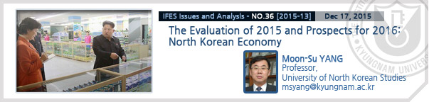 IFES will publish four issues of Issues and Analysis with the theme of “The Evaluation of 2015 and the Prospects for 2016. These four issues include this week’s “North Korean Economy” and “Korean Peninsula Affairs” and “Inter-Korean relations” will be featured in the following weeks. Last week covered “North Korean Domestic Politics.”