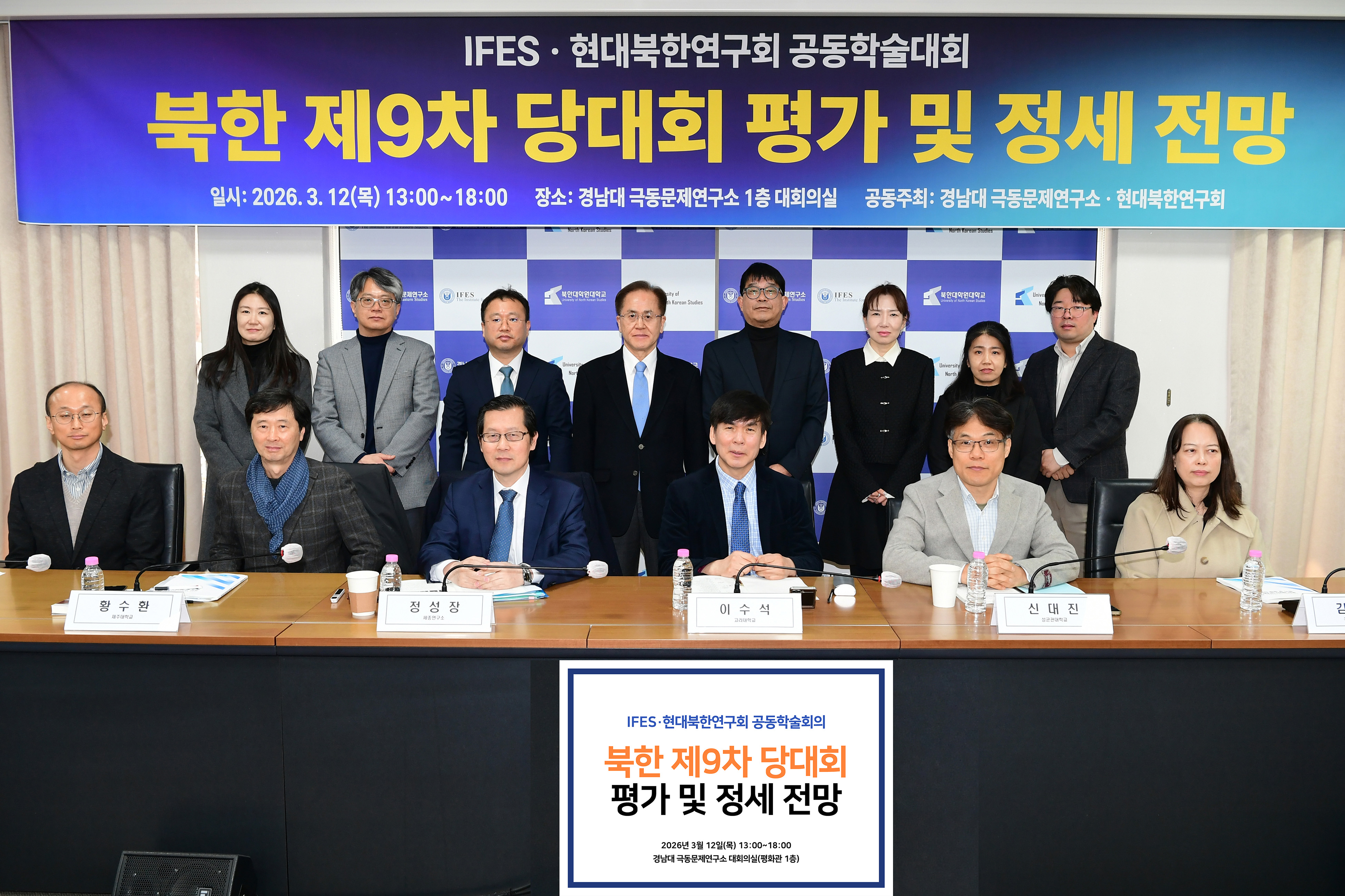경남대 극동문제연구소(소장 이관세)는 3월 12일(목) 오후 1시 평화관 대회의실에서 현대북한연구회와 공동으로 “북한 제9차 당대회 평가 및 정세 전망” 학술회의를 개최하였다. 이번 학술회의는 최근 열린 북한 제9차 당대회의 결과를 다각도로 분석하고, 향후 북한의 대내외 정책 방향과 한반도 정세를 전망하기 위해 마련되었다. 특히 정치·대외/대남·군사·경제·사회/문화·산림 및 국토환경·교육 등 총 7개 부문에 걸친 종합적인 평가가 이루어졌다.