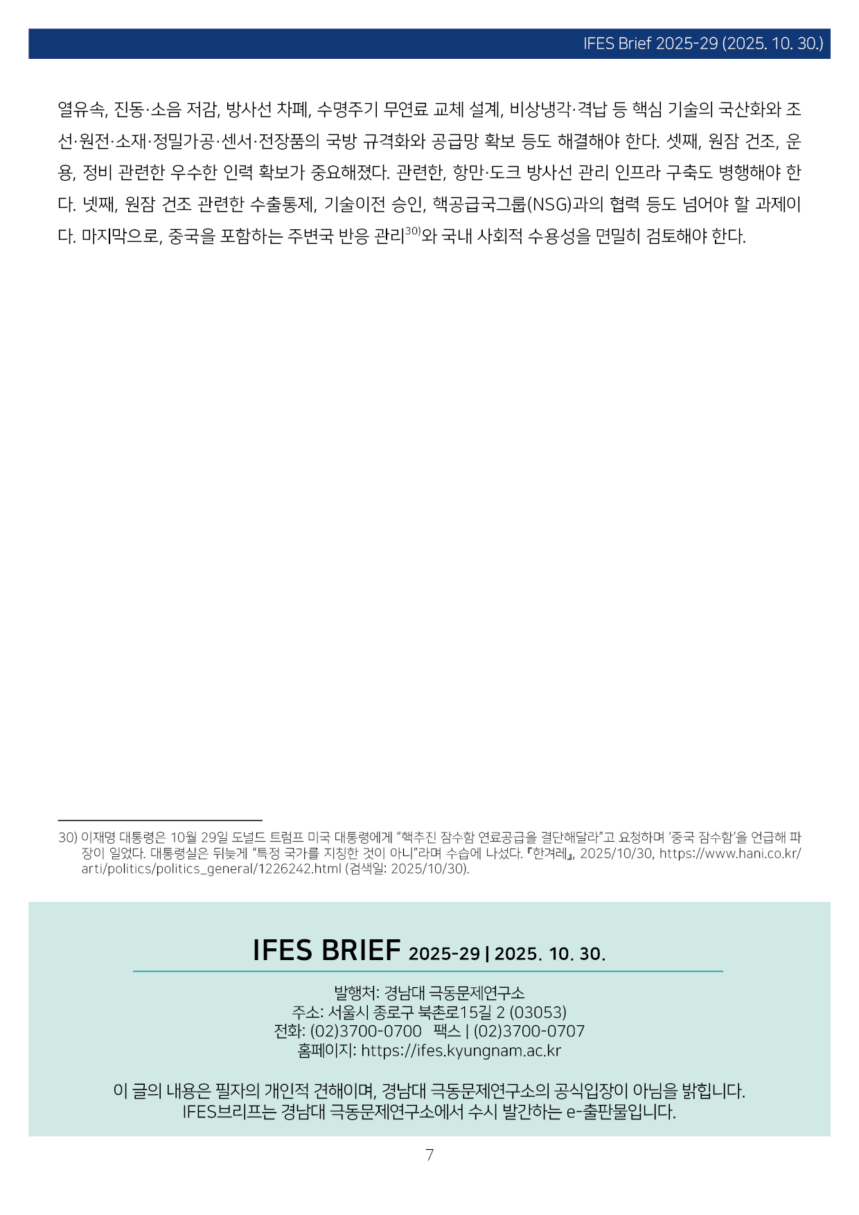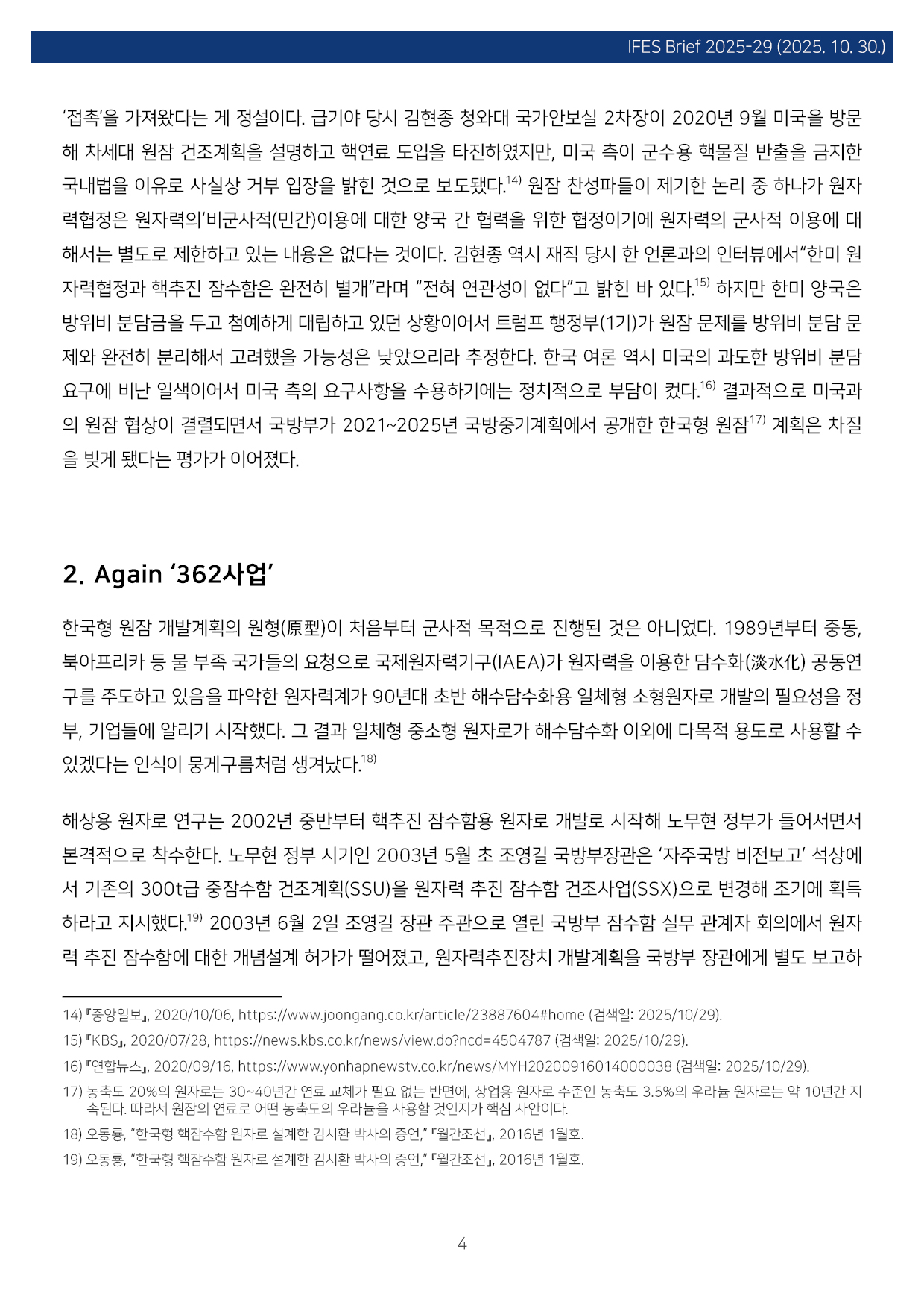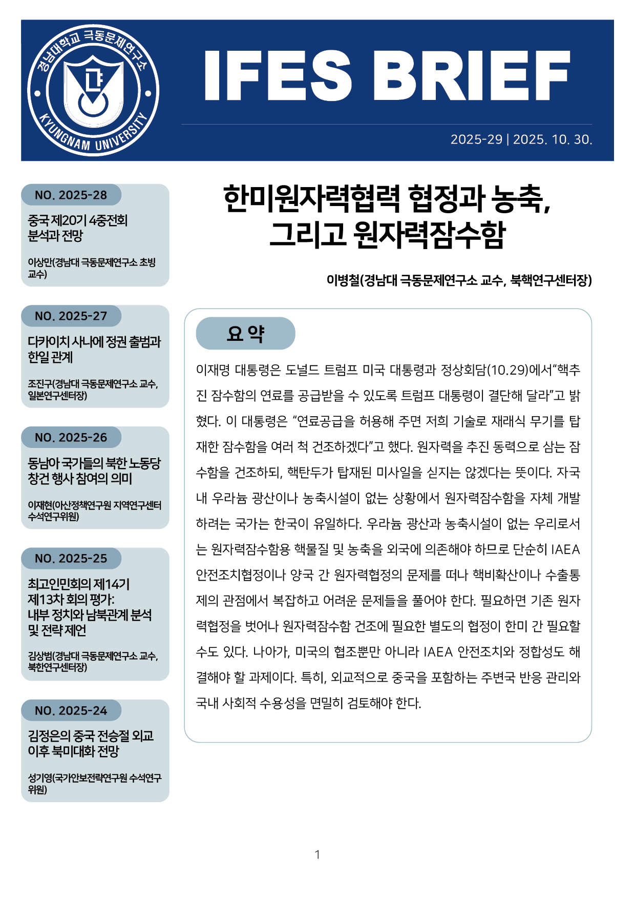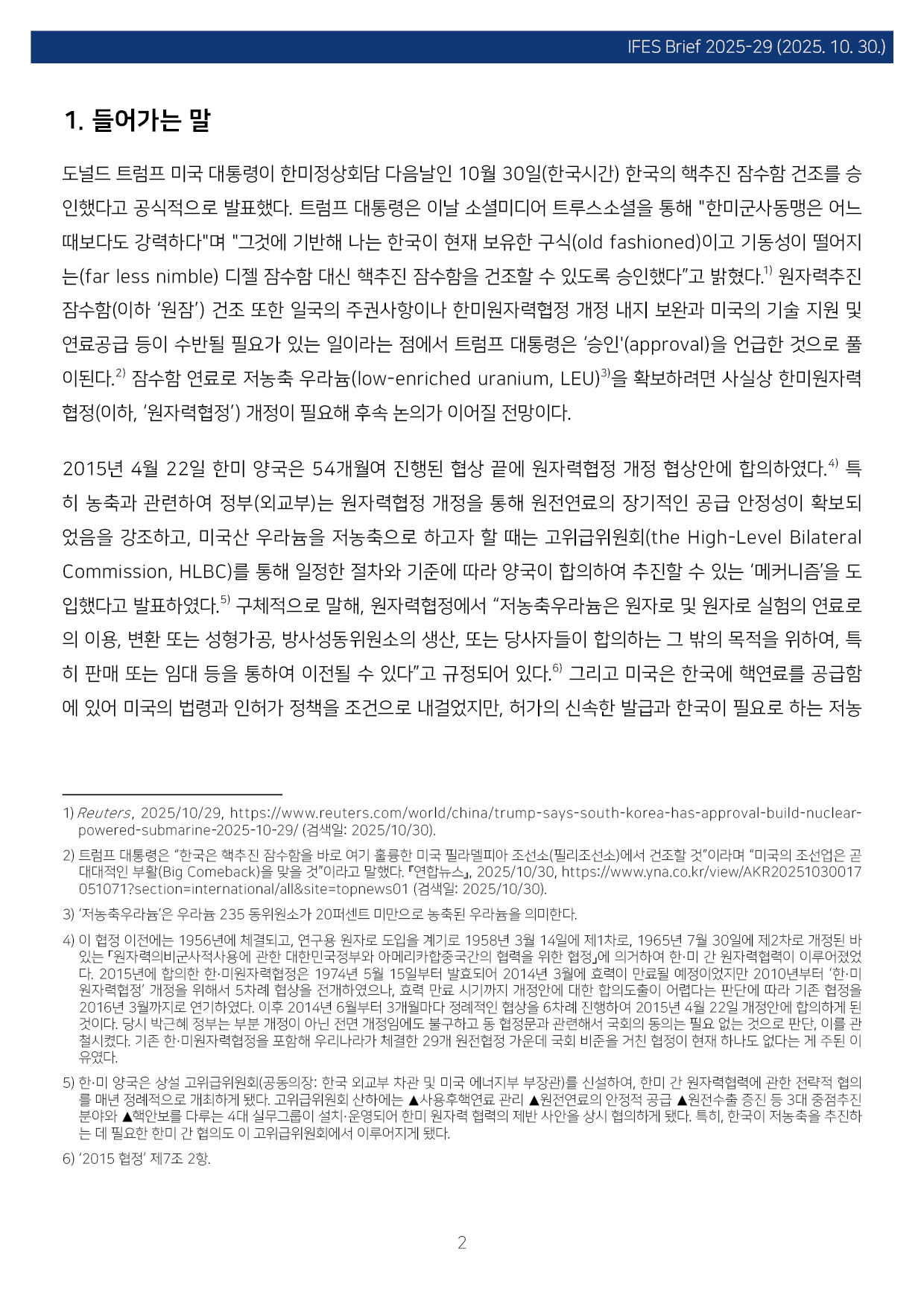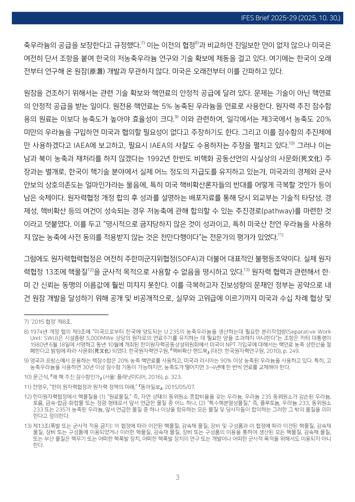 컨텐츠영역 fnctId=material,fnctNo=0 한미원자력협력 협정과 농축, 그리고 원자력잠수함 항목 저자 이병철(경남대 극동문제연구소 교수, 북핵연구센터장) 일련번호 [IFESBrief_2025-29] 발행일 2025-10-30 자료보기
