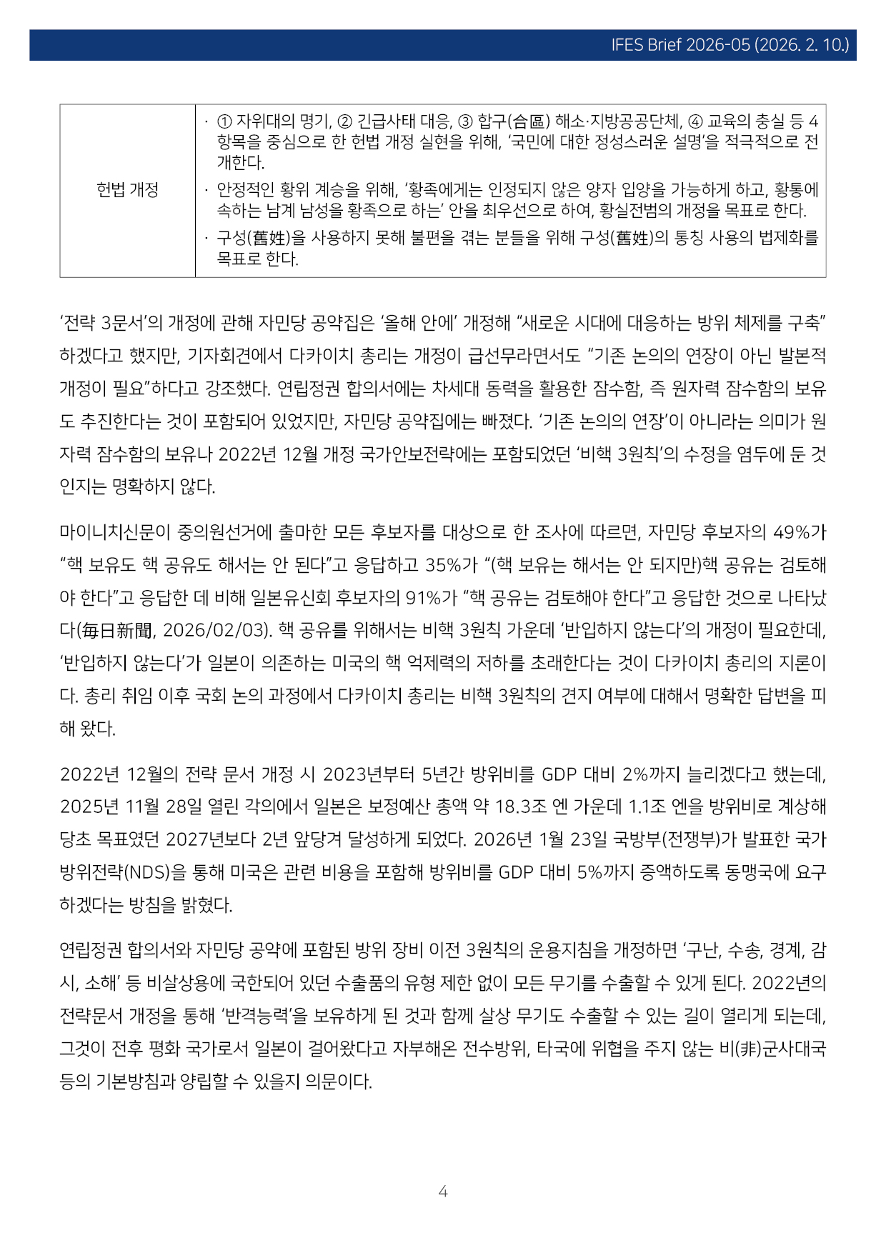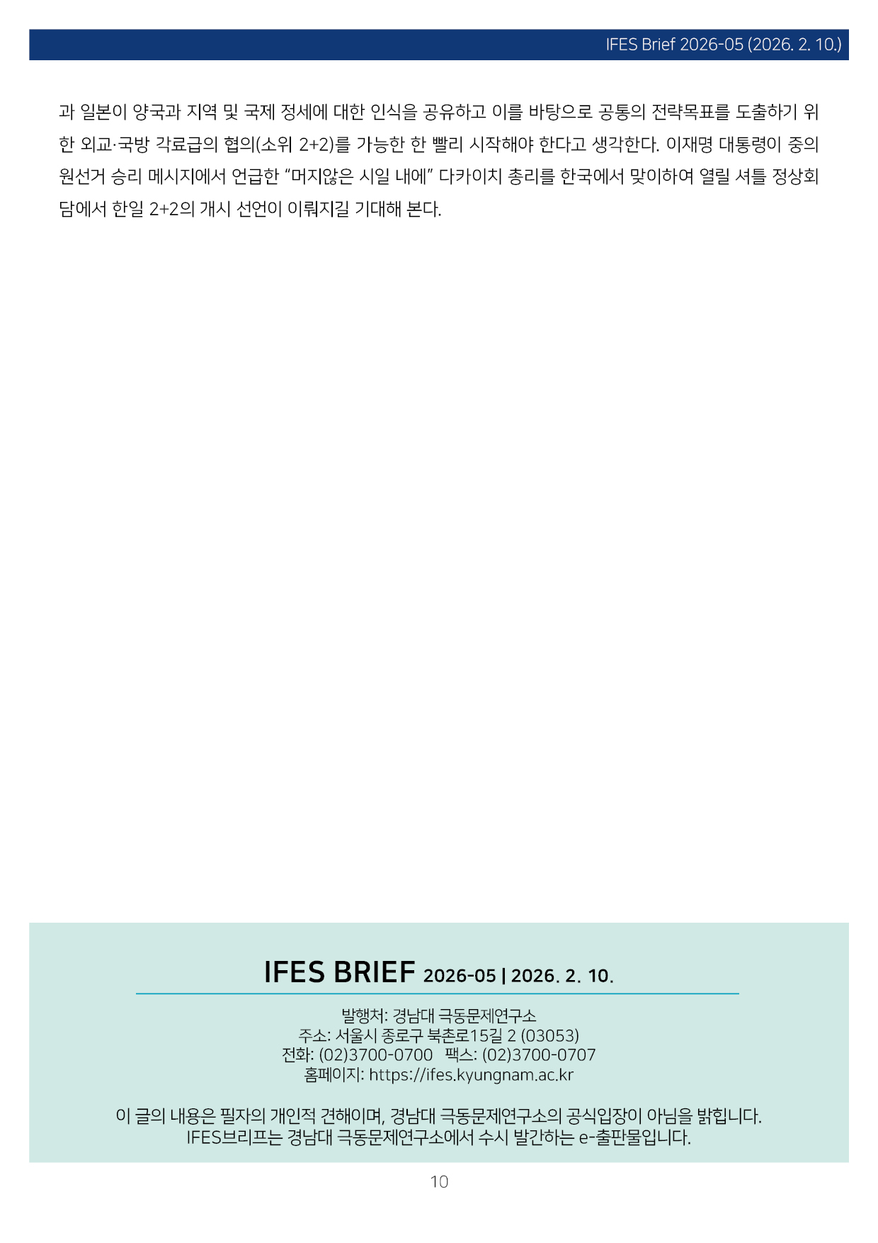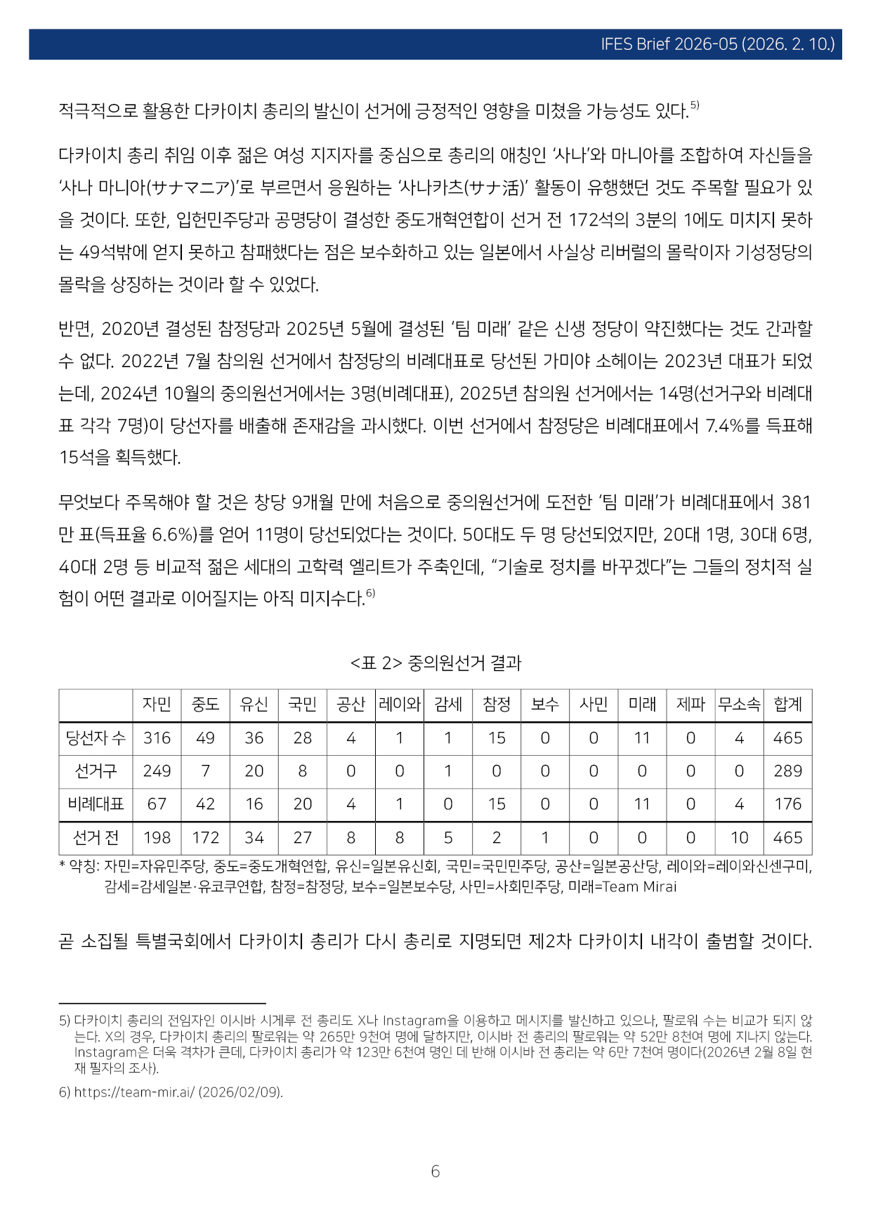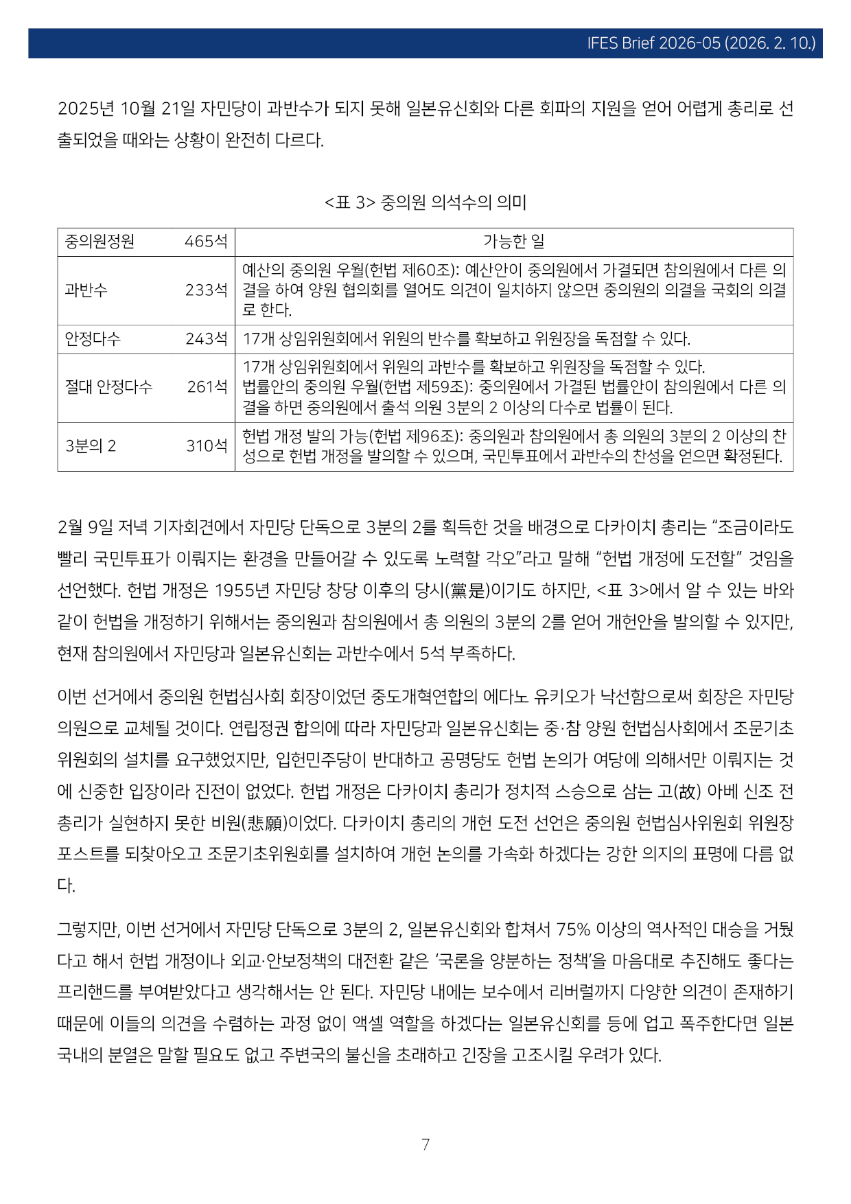 컨텐츠영역 fnctId=material,fnctNo=0 일본 중의원선거 결과와 한일 관계 항목 저자 조진구(경남대 극동문제연구소 교수 일본연구센터장) 일련번호 [IFESBrief_2026-05] 발행일 2026-02-10 자료보기